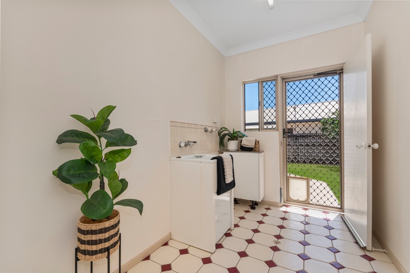The updated kitchen is equipped with an electric oven, a new rangehood, and ample storage space. It flows seamlessly into a spacious second living area. The large laundry adds even more functionality, providing a generous workspace and direct access to the backyard.