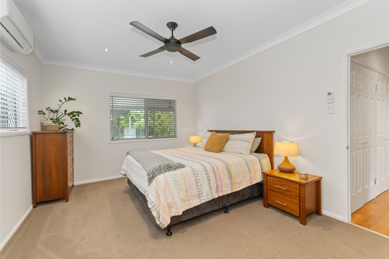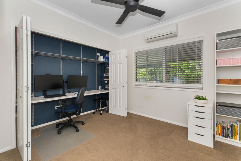 The home features four well-appointed bedrooms, offering both comfort and versatility for family living. The master bedroom is privately positioned at the rear of the home, boasting a generous layout complete with a walk-in wardrobe and private ensuite.
