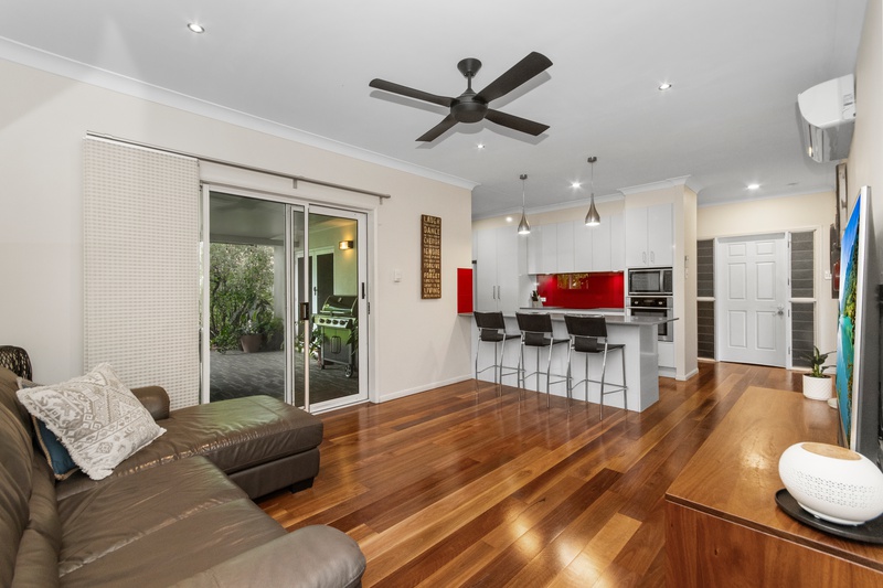 A second living space sits off the kitchen, providing extra room for relaxing or entertaining and includes a second sliding door to the outdoor area.
