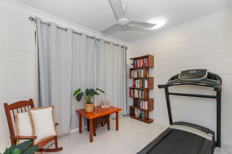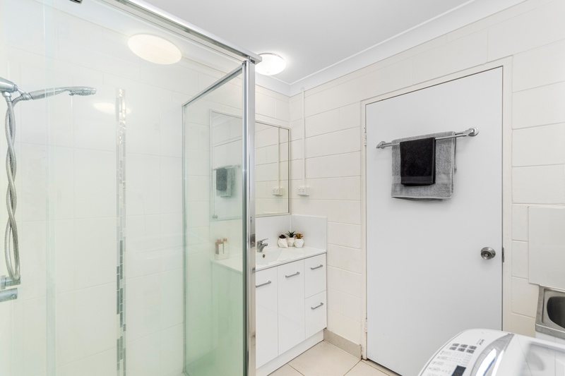 The master bedroom features a built-in wardrobe and air conditioning, ensuring a comfortable retreat year-round. Adjacent to the master bedroom is a linen cupboard and a long, spacious storage room, perfect for larger household items. Across the hall, the second bedroom offers versatility; you can use it as a guest room, home office, yoga space, or cozy sitting area to unwind.