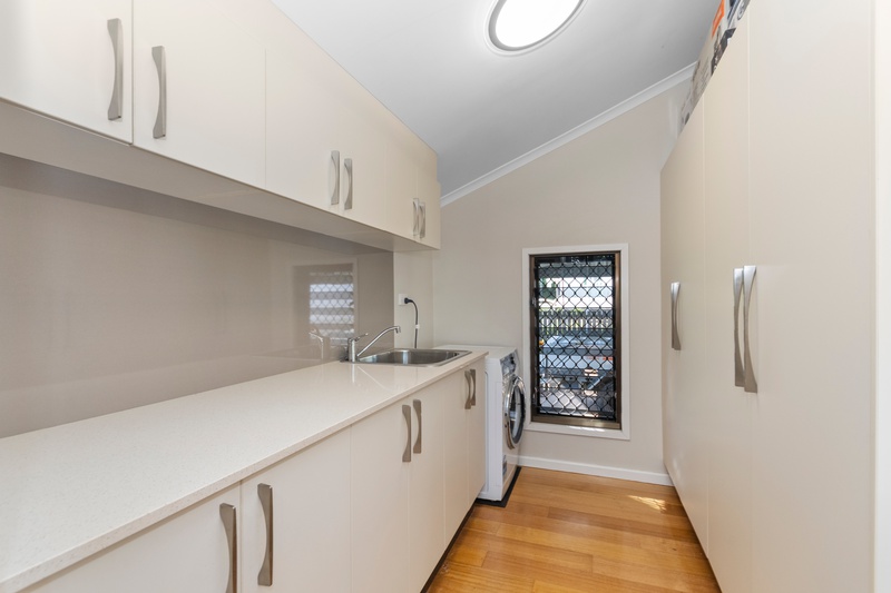 The property boasts a large, undercover patio with a ceiling fan, seamlessly connected to the kitchen making it an entertainer’s dream. The expansive backyard provides plenty of room for outdoor gatherings and BBQs.