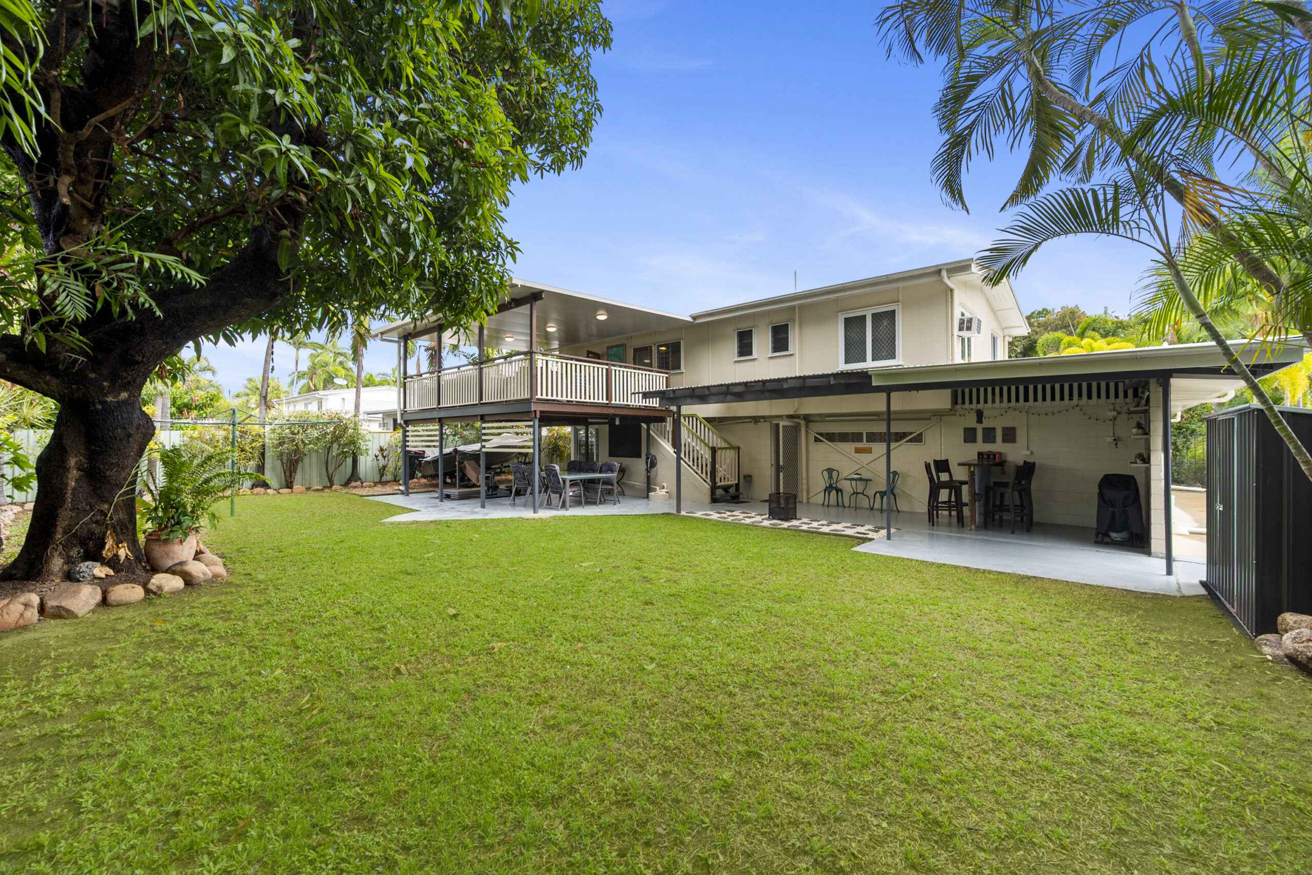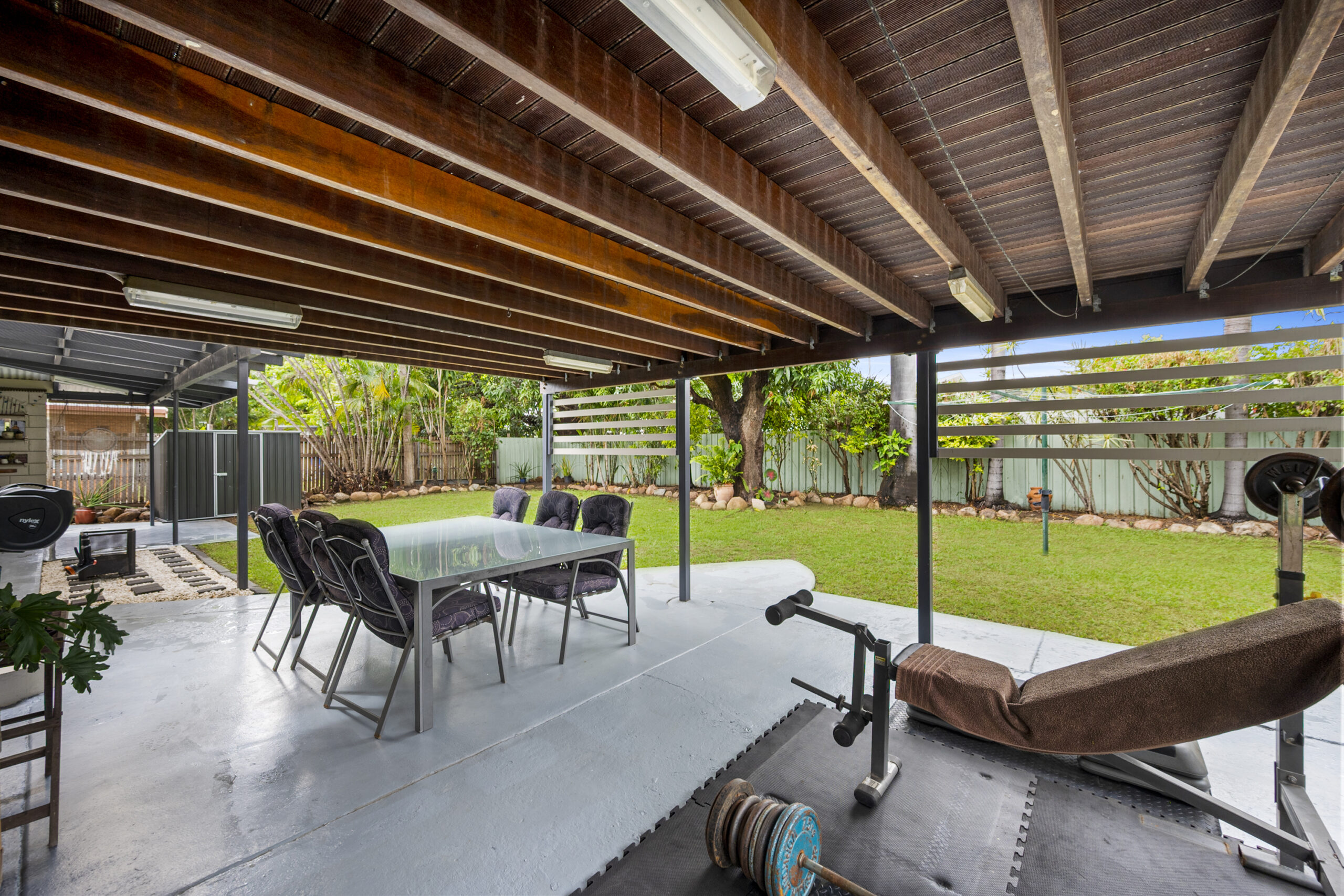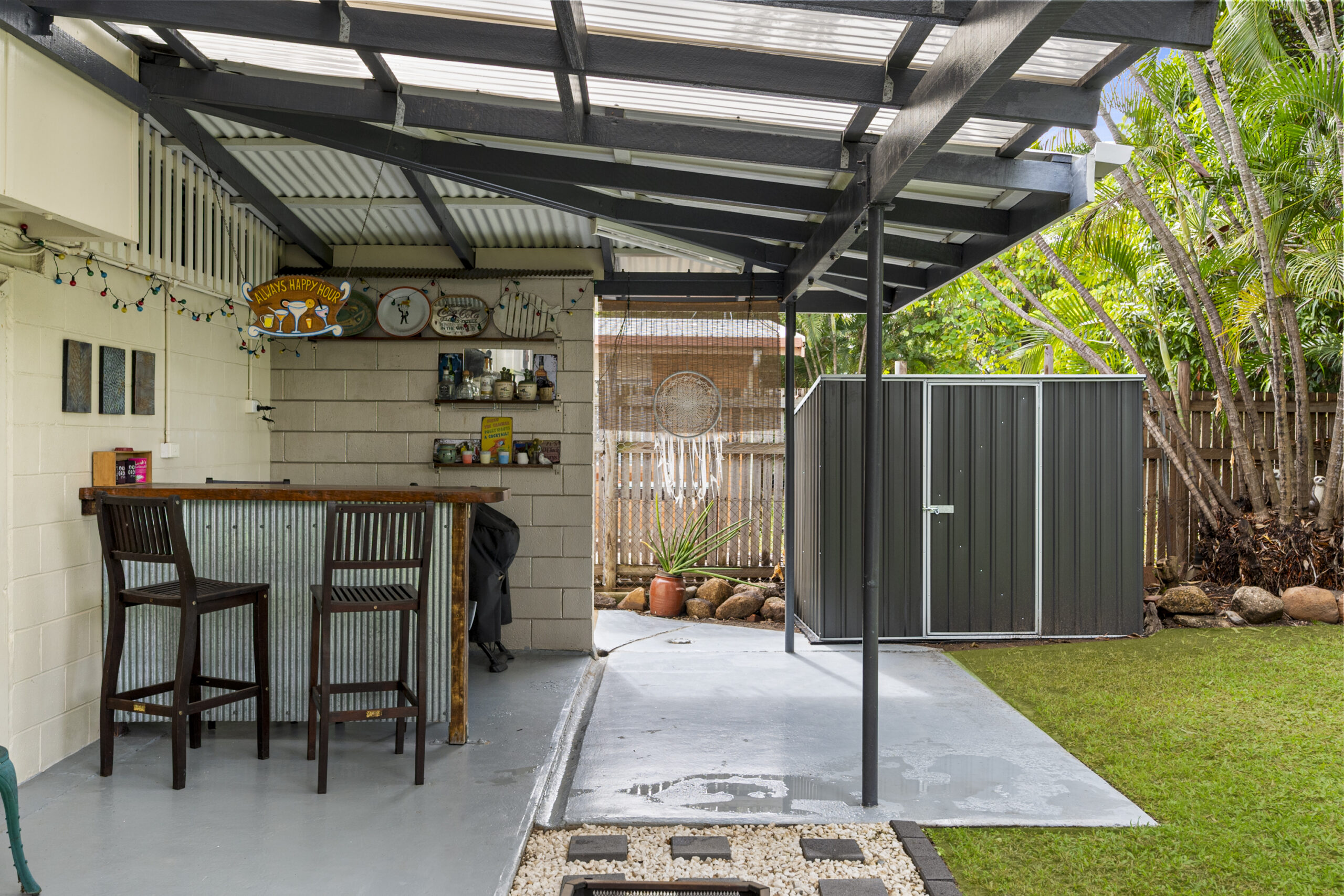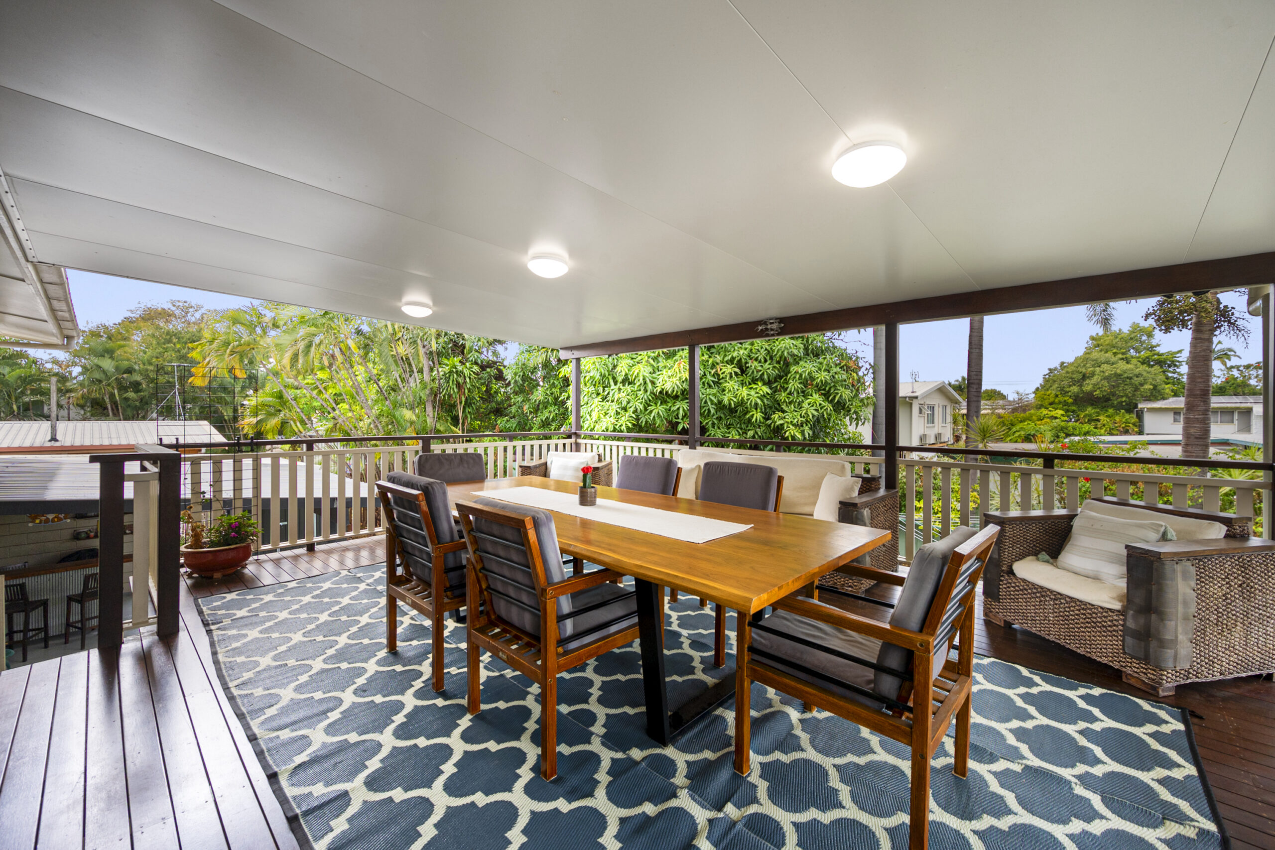 • Expansive outdoor entertaining area with a translucent roof and powered bar area