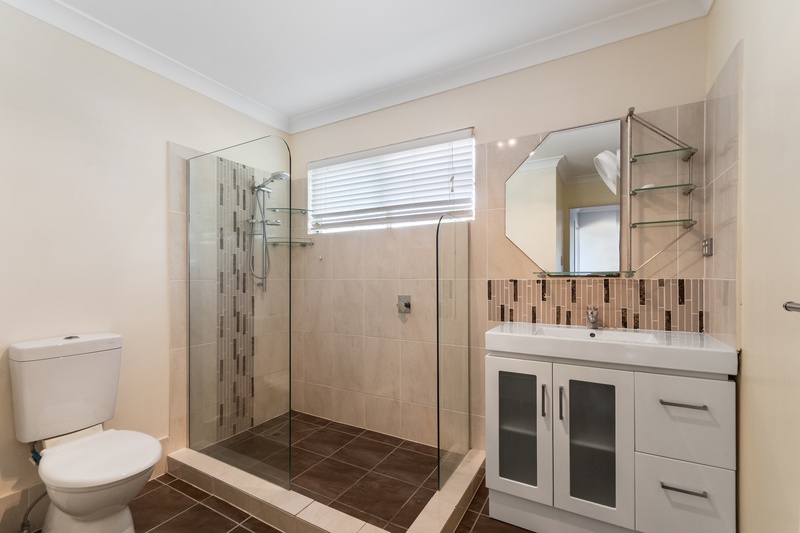 - Modern, spacious bathroom with walk-in shower
